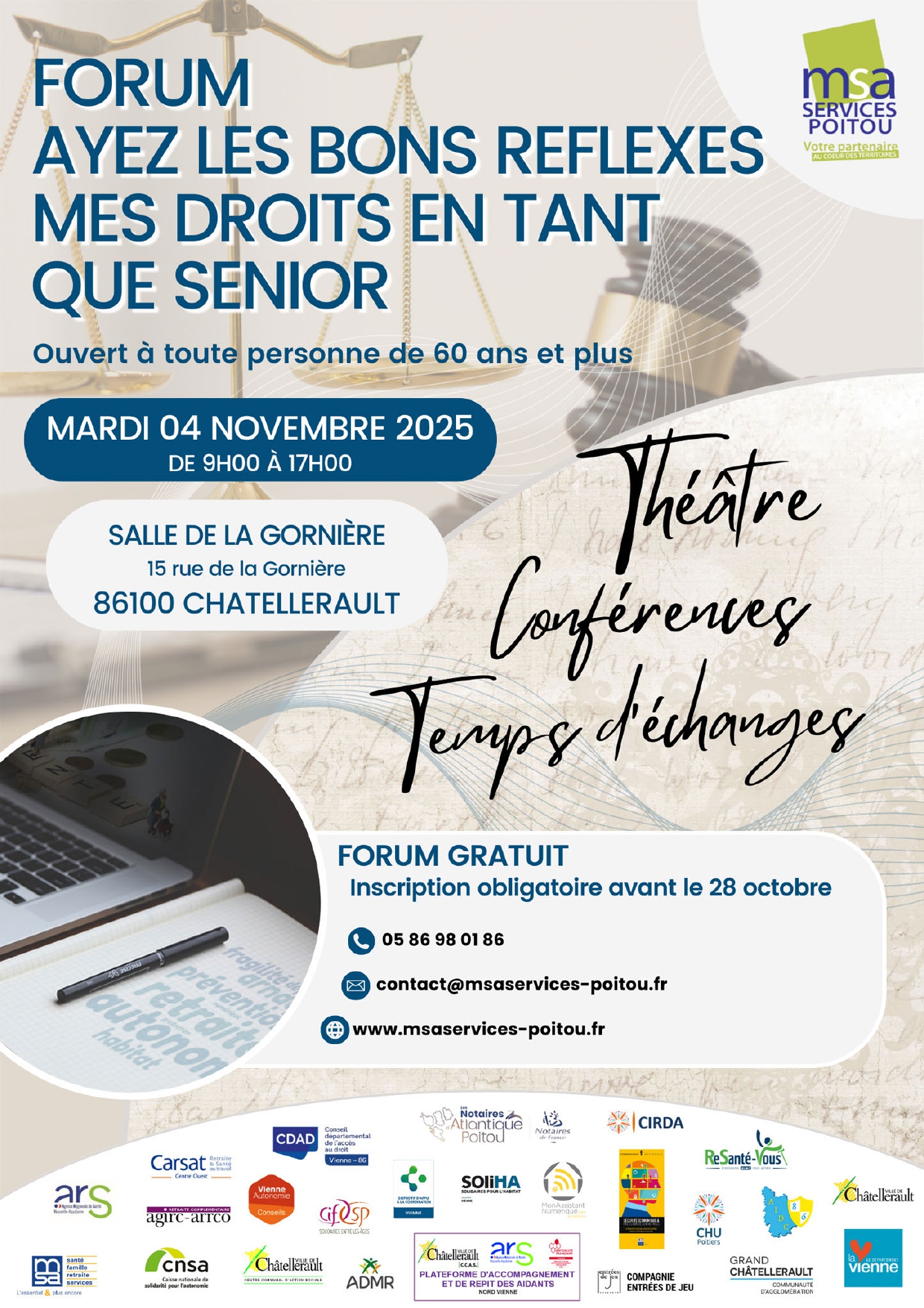 France Alzheimer propose, sur inscription, un temps de convivialité à destination des aidants familiaux. Afin de créer et renforcer un lien social et amical face à l'isolement de "l'Aidant", suite à la perte ou l'entrée en institution de son "Aidé". Cette action permet de se réunir et de partager un moment de convivialité autour d'un repas dans un restaurant du Châtelleraudais. 📅 Le mercredi 29 octobre de 12h à 15h maxi, tous les mois et demi 📍 Dans un restaurant du Châtelleraudais. Pour tous renseignements, contacter Laure au 06.72.30.57.01.