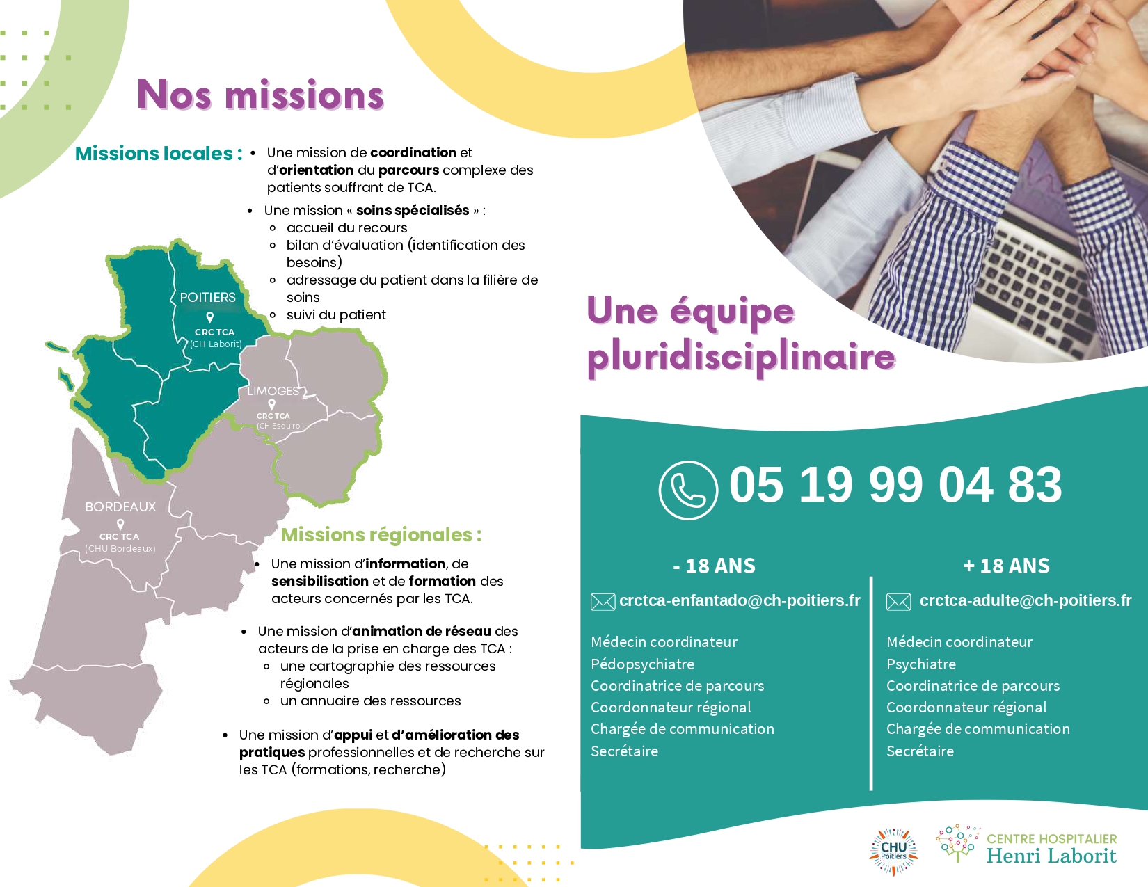 L’équipe du Centre de Recours et de Coordination (CRC) TCA Nord Nouvelle-Aquitaine Poitiers est là pour vous aider à communiquer sur cette nouvelle unité.